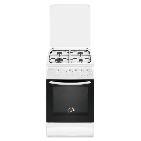 Плита газовая Kraft KF-FSK5407AGW белый (ГК конф.+дух., э/ поджиг конфорок, конфорок - 4, духовка газовая, сталь)
