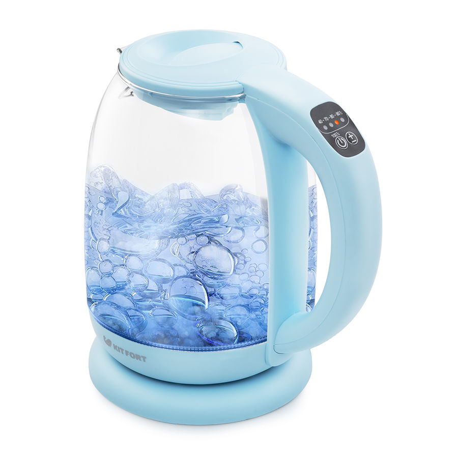 Чайник электрический Kitfort КТ-640-1 голубой (2200 Вт, объем - 1.7 л, корпус: стеклянный)