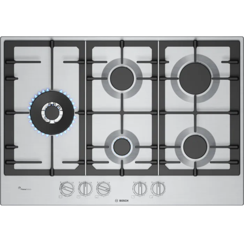 Газовая варочная панель Bosch PCS7A5I90 серебристый (конфорок - 5 шт, панель - нержавеющая сталь, Wok - есть)
