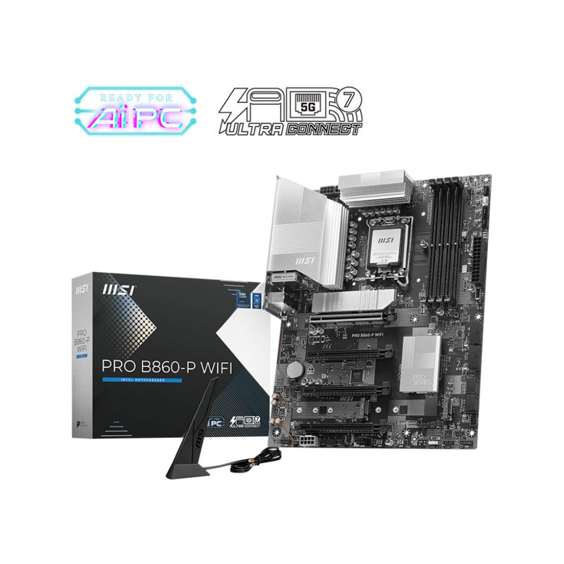 Материнская плата Msi LGA1851: PRO B860-P WIFI [B860, 4хDDR5, 2хPCIe1,1хPCIe16, 1хPCIe4, 4хSATA3, 3хМ2, 5xUSB3, 4xUSB2, DP, HDMI, ATX]