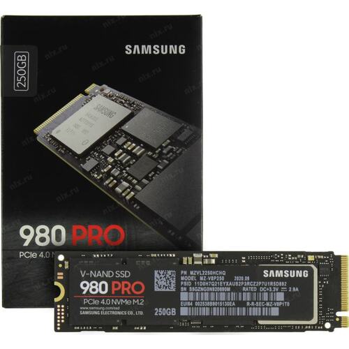 Твердотельный накопитель SSD 2280 M.2: 250 ГБ Samsung 980 PRO [Скорость чтения/ записи: 6400 МБ/ с/ 2700 МБ/ с] MZ-V8P250BW