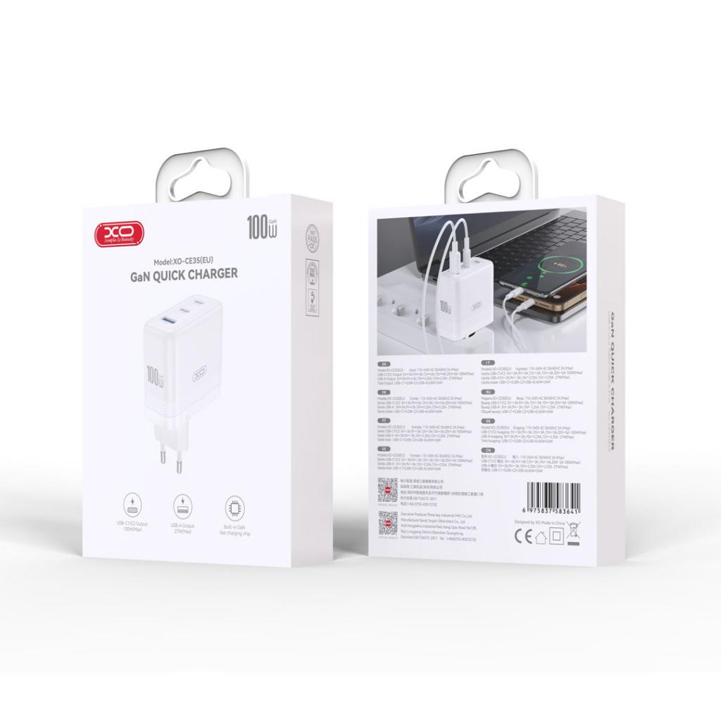 СЗУ -XO- QC3.0 5А 1xUSB 2xType-C (CE35 PD100W, белый)