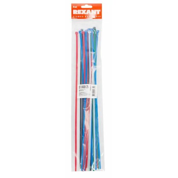 Стяжка кабельная нейлоновая 400x4,8мм, набор 5 цветов (25 шт/ уп) Rexant (07-0408-25)
