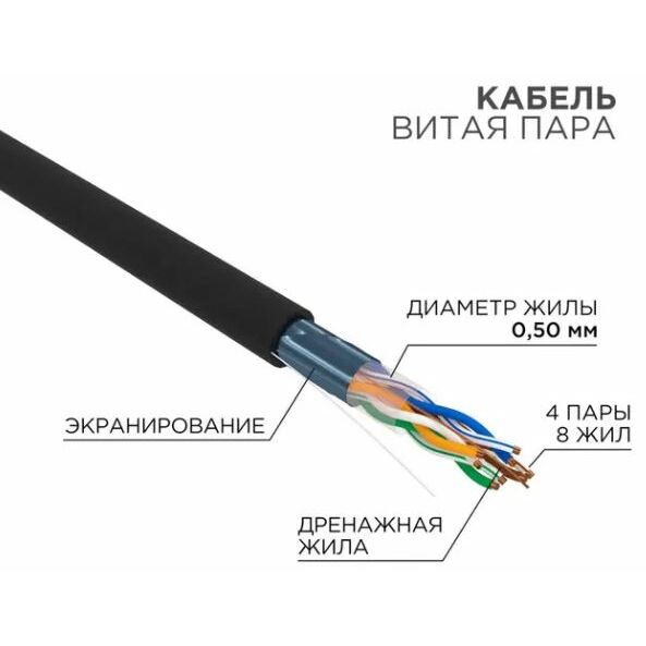 Кабель Cu FTP, Внешний, 4x2x0.50, бухта 305м., Cat5e, Rexant (01-0146-R)